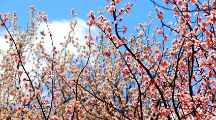 千畝桃林灼灼盛放,桃果初露尖尖,引來花雨翩躚,枝丫顫顫仿佛一幅絕美畫卷令人陶醉。