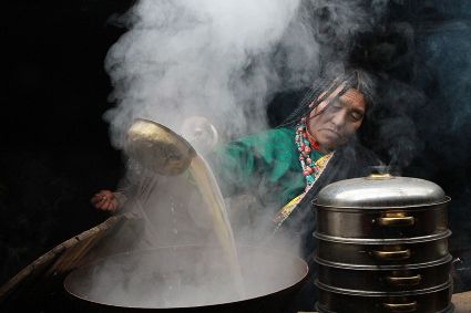 石渠的村莊、草原,在云里若隱若現(xiàn),山頂云霧繚繞,仿佛坐落在云端之上,一睹這溫柔的景色。