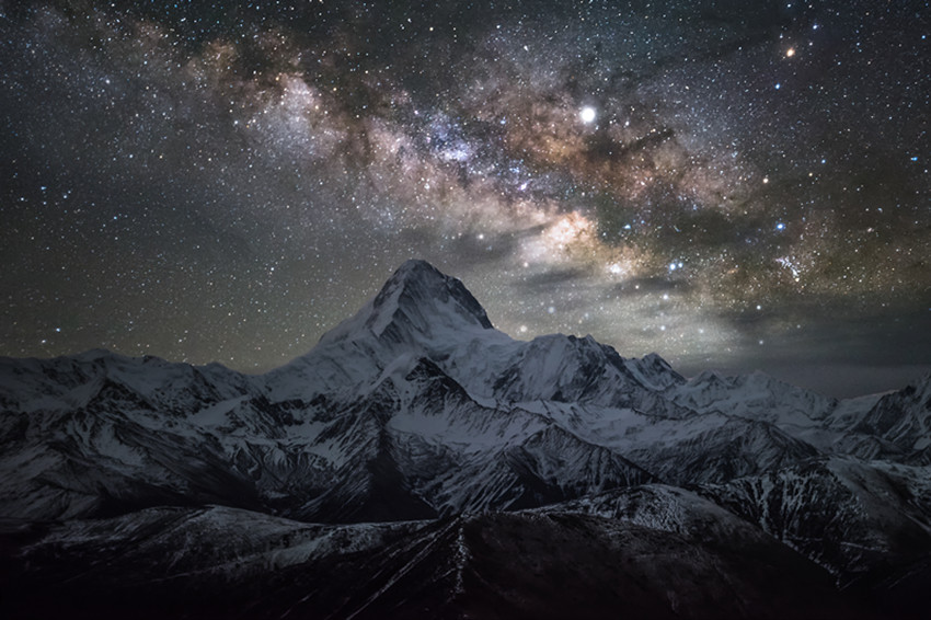 魚子西是新都橋最近的星空攝影基地,這里很容易看到星河。如果趕在黃昏前,抵達(dá)魚子西星空宿營地,震撼人心的日照金山和晚霞流云將映入眼前。夕陽西墜,夜幕降臨。漫天星辰與圓月,將光輝灑下地面,涂抹無盡浪漫的色彩。