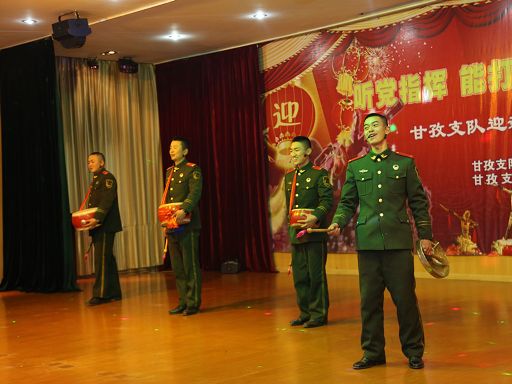 整臺(tái)匯演以“我們行進(jìn)在強(qiáng)軍路上”為主題,共分“喜迎新年,官兵情懷,祝福祖國(guó)”三個(gè)篇章,晚會(huì)融歌舞、小品、相聲、雙簧等表演于一體,結(jié)構(gòu)緊湊、熱情奔放、氣勢(shì)恢弘,營(yíng)造出了昂揚(yáng)振奮、拼搏進(jìn)取的濃厚氛圍,充分展示了支隊(duì)官兵朝氣蓬勃的青春氣息和扎根高原、建功警營(yíng)的豪情壯志。晚會(huì)在器樂合奏《鑼鼓喧天迎新春》拉開帷幕,融入歡慶腰鼓的喜慶元素,和著歡快的節(jié)奏,盡顯支隊(duì)特色文化隊(duì)的藝術(shù)魅力。歌舞表演《當(dāng)兵就是那么帥》刻畫了支隊(duì)官兵時(shí)刻準(zhǔn)備著上一線、打頭陣的戰(zhàn)斗激情;雙簧《快樂的武警官兵》展示了官兵熱愛警營(yíng)生活、活潑可愛的一面;歌舞《迷彩假面舞》演繹了支隊(duì)官兵扎根高原,忠誠(chéng)使命做奉獻(xiàn)的壯志豪情;《三句半》詮釋了支隊(duì)官兵牢記強(qiáng)軍目標(biāo),投身強(qiáng)軍實(shí)踐,勇挑重?fù)?dān),沖鋒在前,報(bào)國(guó)為民的高尚情懷;詼諧夸張的手法以小品《歌倆好》、啞劇《新兵訓(xùn)練》“兵演兵、兵寫兵”,表達(dá)官兵團(tuán)結(jié)一心,刻苦訓(xùn)練的精神風(fēng)貌,博得了現(xiàn)場(chǎng)觀眾的陣陣掌聲,將晚會(huì)推向了一個(gè)又一個(gè)高潮。演出中,各基層中隊(duì)維穩(wěn)駐訓(xùn)分隊(duì)以團(tuán)拜形式向全支隊(duì)官兵送上了新春的祝福。晚會(huì)在舞蹈表演《軍之魂》中落下帷幕。