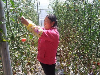 本網(wǎng)訊(馬建華 文/圖)陽春三月,爐霍大地仍然一派蕭條景象。然而在爐霍縣斯木鄉(xiāng)吉絨村的蔬菜大棚里,卻綠意盎然。紅彤彤的樹番茄、碩大的茄子、長(zhǎng)勢(shì)喜人的青椒、紅艷艷的花卉,大棚里溫暖的春色吸引了縣城市民和游客前來觀光,購買新鮮的蔬菜。比縣城菜市場(chǎng)價(jià)格便宜一半的蔬菜,讓市民爭(zhēng)相前來購買。吉絨村村民將土地流轉(zhuǎn)給蔬菜種植公司,收取土地流轉(zhuǎn)費(fèi),在蔬菜大棚里打工,每天還有100元錢的收入,而且學(xué)到了先進(jìn)的蔬菜種植技術(shù),為今后發(fā)展蔬菜大棚、種植反季節(jié)蔬菜、增加經(jīng)濟(jì)收入打下了堅(jiān)實(shí)基礎(chǔ)。爐霍縣在發(fā)展高原特色現(xiàn)代觀光農(nóng)業(yè)方面邁出了可喜步伐。