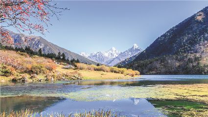 一天之中,數(shù)清晨和傍晚的海子最美,晨光中,湖水猶如鏡面般倒映著周圍的景物,天色漸漸亮了,周圍的景物也在 “鏡子”中漸漸清晰起來,特別是那些雪山下的海子,當(dāng)太陽給雪山鍍上一層玫瑰金,倒影更美。傍晚,落日的余暉灑在海子和它周圍的景物上,又是另一種美,天上再有幾縷晚霞,更絕。四季里,就要看秋天的海子,因?yàn)檫@時(shí)海子周圍的景色是最美的,紅葉、黃葉、綠葉相間,便襯托得海子更美。
