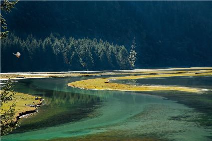 因?yàn)榭刀ǖ奶鞖猓退惝?dāng)?shù)厝艘沧聊ゲ煌?,有時(shí)天空正暖陽(yáng)高照,忽的便下起小雨;有時(shí)陰云密布,但轉(zhuǎn)眼便是風(fēng)和日麗;霧總是那樣飄忽不定,時(shí)常在山間聚散游走;風(fēng)永遠(yuǎn)是那么剛?cè)岵?jì),經(jīng)常在河邊回旋嬉戲……陰晴冷暖,風(fēng)雨霧雪,在這里,天氣的變化是那么隨意自由,多少有點(diǎn)肆無(wú)忌憚,總之一切的一切都是謎,這一刻的你決然猜不出下一刻的天氣。