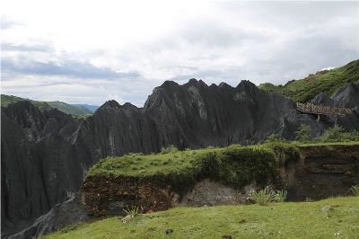 墨石公園,是中國(guó)唯一高原石林景觀,被譽(yù)為“中國(guó)最美景觀大道第八美 ”。受第四紀(jì)新構(gòu)造運(yùn)動(dòng)影響,隨著青藏高原的隆起,鮮水河斷裂帶中的巖石受到擠壓、剪切、破碎、糜化,形成糜棱巖石林。石林含丐鹽,受空氣濕度影響,干燥季節(jié)呈淺灰色、淺藍(lán)色,濕潤(rùn)季節(jié)呈滄黑色,因此又稱(chēng)之為變色石林。