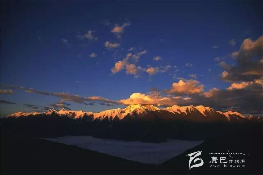 在日出日落的時候,朝陽與晚霞撒在貢嘎山峰上,被白雪覆蓋的部分也好似化成了霞光,耀眼而壯麗。