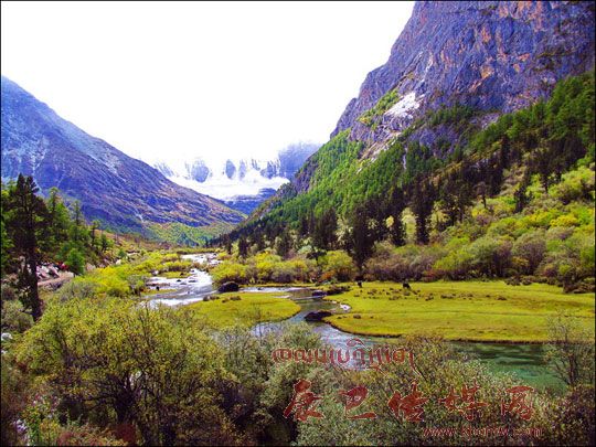 洛絨牛場也是通往五色海、牛奶海的必經之地。(單邊步行約3.5小時左右)另外小轉神山仙乃日也要經過這里(由沖古寺出發(fā),經洛絨牛場繞仙乃日轉一圈,全程20公里)。