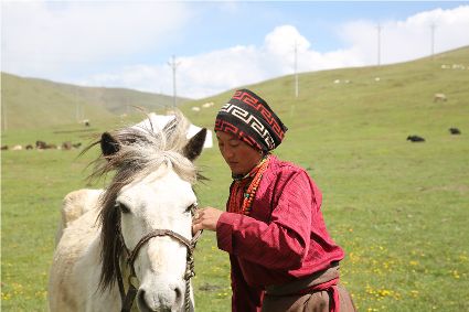 格桑花盛開(kāi) 牧民馬背上一顯身手