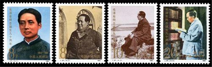 我國從1983年開始,郵政部門開始每“逢十”發(fā)行毛澤東誕辰紀(jì)念郵票,至今已發(fā)行了四套共15枚,其中小型張1枚。方寸之間生動的再現(xiàn)了毛澤東光彩照人的偉人風(fēng)采。