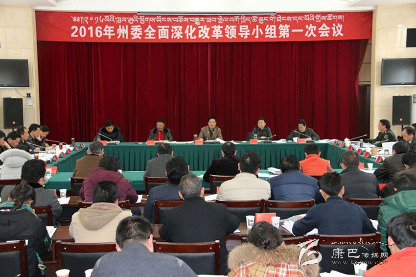 本網(wǎng)訊(記者 陳斌 文/圖)2月23日下午,州委全面深化改革領(lǐng)導(dǎo)小組召開今年第一次工作會議,傳達學(xué)習(xí)中央全面深化改革領(lǐng)導(dǎo)小組第19次、第20次會議精神和省委全面深化改革領(lǐng)導(dǎo)小組第9次會議精神;聽取各專項小組關(guān)于2015年改革工作推進情況和2016年改革工作安排情況匯報;審議通過《中共甘孜州委全面深化改革領(lǐng)導(dǎo)小組2016年工作要點》《甘孜州黨風(fēng)廉政建設(shè)“一案雙查”辦法》《甘孜州進一步深化司法體制和社會體制改革實施方案》。