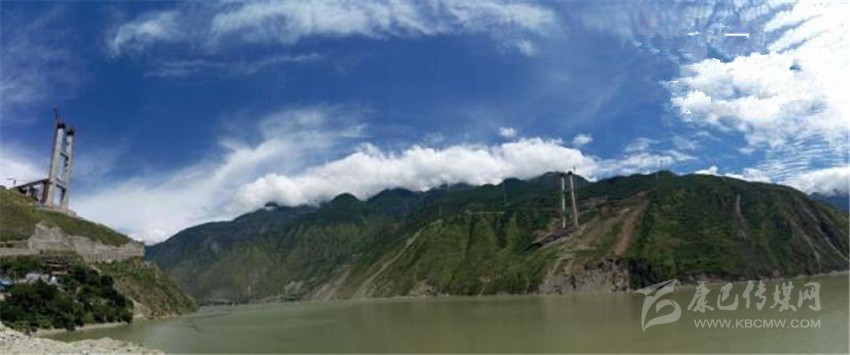 沿國(guó)道318線繼續(xù)往康定方向走,奔涌的大渡河鑲嵌在連綿起伏的山巒之間。車行一段距離后,矗立在河兩岸的兩座高聳的橋塔映入眼簾。這就是建設(shè)中的“川藏第一橋”——瀘定大渡河興康特大橋。