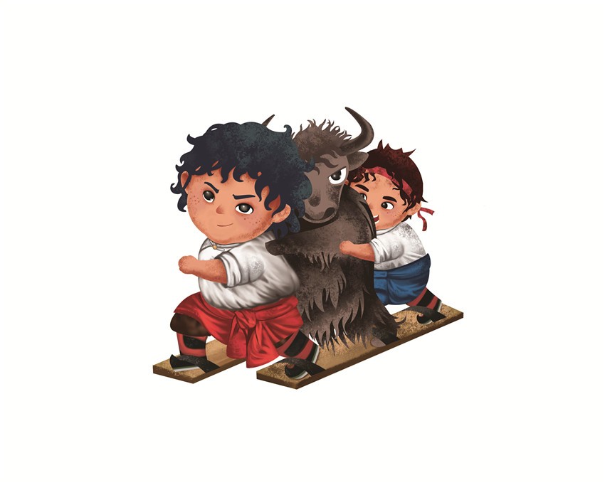 據(jù)悉,該卡通形象由康巴文化研究院設(shè)計(jì),最早出現(xiàn)在去年的環(huán)貢嘎山百公里越野挑戰(zhàn)賽上,在各國越野高手云集的賽場上,一名身著傳統(tǒng)服飾的小藏娃牽著牦牛奔跑的形象令人過目不忘。而此次省民運(yùn)會將繼續(xù)沿用“小藏娃和牦牛洛洛的形象”,康巴文化研究院組織專人設(shè)計(jì),按照既生動可愛又準(zhǔn)確把握運(yùn)動項(xiàng)目特征的要求,將此次運(yùn)動會中的蹴球、陀螺、射弩、高腳競速、板鞋競速、押加、珍珠球、民族式摔跤等8個(gè)競賽項(xiàng)目以卡通形象展現(xiàn)。