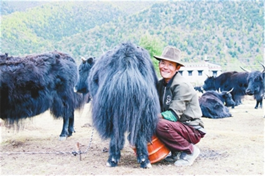 鄧珠澤榮一家多年前從道孚縣八美鎮(zhèn)移居到各卡鄉(xiāng),因?yàn)樵诖迳蠜]有分到土地,家里的開銷都靠政府的福利政策和挖蟲草、采松茸的收入,只能勉強(qiáng)度日。去年,該縣康巴渠德農(nóng)牧事業(yè)發(fā)展合作社與該村達(dá)成了定點(diǎn)收購(gòu)牛奶的協(xié)議,鄧珠澤榮依靠政策的支持成為了一名養(yǎng)牛戶。2017年,他養(yǎng)了50多頭奶牛。光是賣奶制品的收入就有近十萬(wàn)元;村合作社的5畝高原草莓,產(chǎn)值近12萬(wàn)元,他家從中獲得了幾千元的勞務(wù)收入和分紅收入。有了這兩項(xiàng)收入,鄧珠澤榮一家迅速由特困戶過上了小康生活。