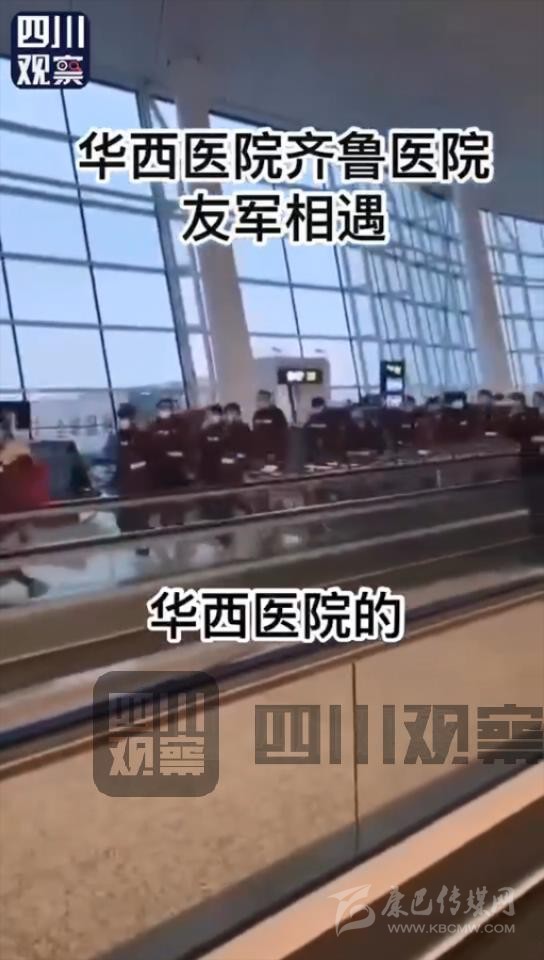 2月7日,四川大學華西醫(yī)院和山東大學齊魯醫(yī)院的援助隊在武漢天河機場相遇,兩隊醫(yī)生護士隔空呼喊“加油”。據(jù)悉,他們將共同接管武漢大學人民醫(yī)院東院區(qū)。