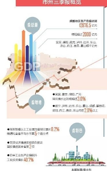 從增速看,宜賓、雅安、綿陽、廣元4市增速“破3”,宜賓達到3.3%;上半年一度負(fù)增長的4個市州也全面扭轉(zhuǎn)下滑勢頭,前三季度增速全部轉(zhuǎn)正。