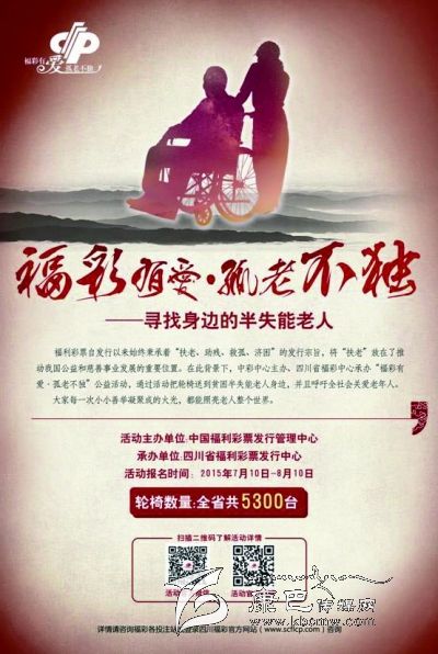 為踐行福利彩票“扶老、助殘、救孤、濟困”宗旨,州福彩中心將在全州范圍內開展“福彩有愛·孤老不獨”大型慈善公益活動,特向我州貧困半失能老人免費贈送福彩愛心輪椅。