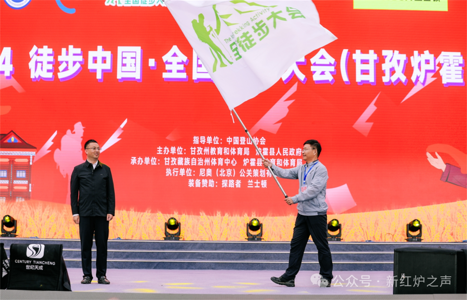 開幕式上,國家體育總局向爐霍縣授予了全國徒步大會會旗。