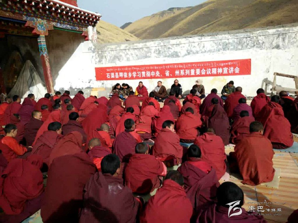 在呷依鄉(xiāng)一所寺廟的院子內(nèi),全寺僧侶圍坐在院壩內(nèi),靜靜的聆聽宣講組就寺廟十七項(xiàng)工作及中央、省、州系列重要會(huì)議精神的宣講。一位僧人在聆聽宣講后說(shuō):“今天,通過宣講員了解了近期黨和國(guó)家的各項(xiàng)方針、政策,進(jìn)一步學(xué)習(xí)了法律法規(guī)相關(guān)知識(shí)與寺廟管理十七項(xiàng)工作,我們一定會(huì)加強(qiáng)自身管理,愛國(guó)愛教、持戒守法,積極促進(jìn)國(guó)家各項(xiàng)惠民政策的實(shí)施。”