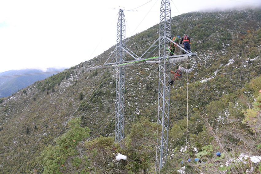 10月2日晚上,折多山上的桿塔上,出現(xiàn)了大批國(guó)網(wǎng)甘孜供電公司的服務(wù)隊(duì)員們,由于當(dāng)日下午康定市區(qū)內(nèi)和折多山氣候突變,大雪突至,厚厚的積雪使康定市新老城區(qū)、新都橋片區(qū)、塔公片區(qū)多處電力設(shè)施受損,多條供電線路中斷,導(dǎo)致折西片區(qū)大部分鄉(xiāng)鎮(zhèn)以及康定市區(qū)部分地方無(wú)電。