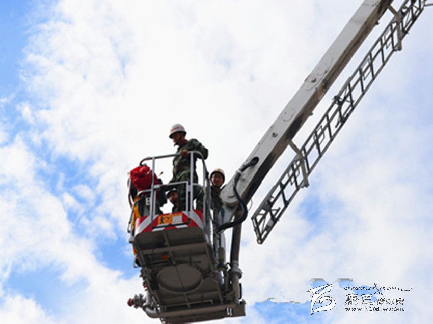 甘孜:登高平臺(tái)消防車“擎天柱”伸向云端