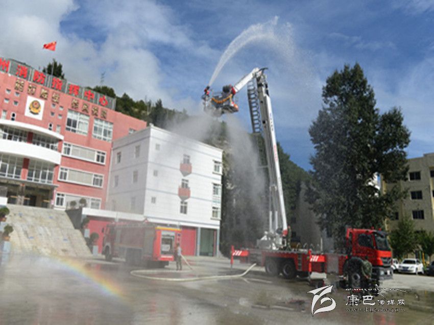 本網(wǎng)訊(劉國(guó)謙文/圖9月8日上午,甘孜消防支隊(duì)操場(chǎng)衛(wèi)聳立著一道“銀色天梯”,筆者在現(xiàn)場(chǎng)目擊了 DG-32C登高平臺(tái)消防車的變形過程。隨著 4個(gè)支撐架的展開,車體被架離地面,登高平臺(tái)臂緩緩上升,如“擎天柱”般伸向云端。在兩名駕駛員的配合操作下,平臺(tái)頂端配載的水炮噴射出一條長(zhǎng)長(zhǎng)的水龍,隨著水壓漸漸加大,奔騰的水龍帶著一道彩虹劃過高空,成為云端深處一道壯觀的麗景。