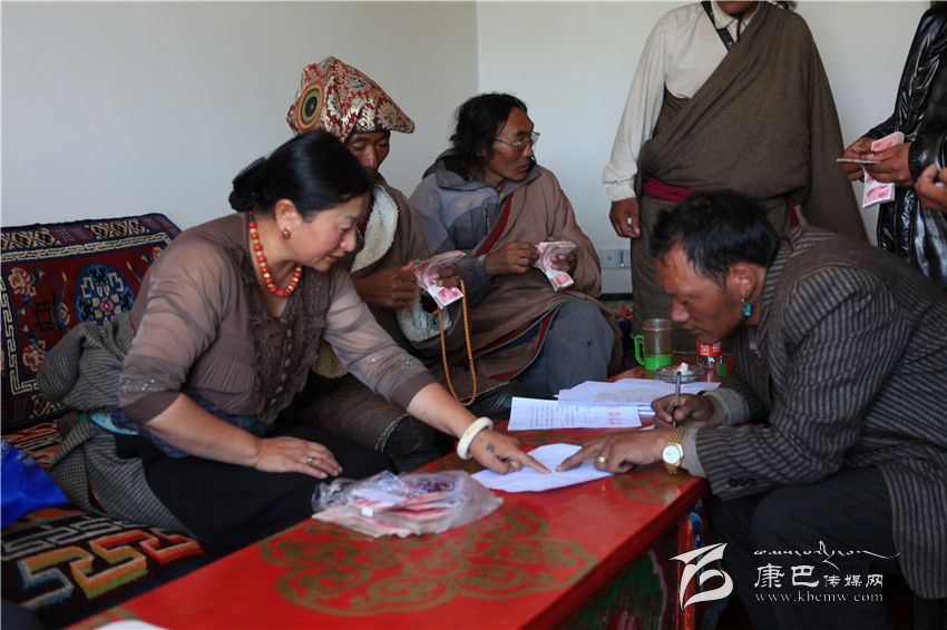色達縣基層干部現(xiàn)場兌現(xiàn)易地扶貧搬遷補助款。