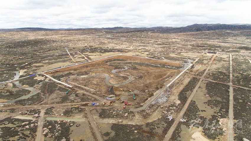 在海子山散落著數(shù)米寬巨石的曠野上,一塊有10個足球場大的圓形區(qū)域已經(jīng)成型,挖土機忙著挖出3個“品”字形、深4.5米的巨型水池。