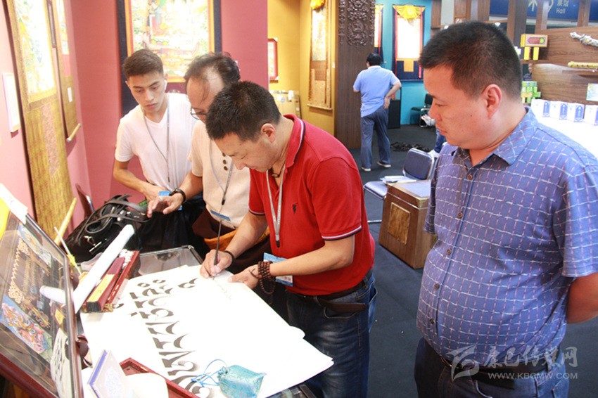 本屆文博會,巴松鄧珠帶來了一件藏文書法作品《格薩爾王》,讓現(xiàn)場觀眾嘖嘖稱贊。孫先生說:“把書法作品用藏族唐卡藝術(shù)的裝裱方式來裝裱,真讓我開了眼界。這件作品圖文并茂,真是太棒了,讓我覺得甘孜這個地方特別神圣,令人向往。我以后有機(jī)會不僅要好好練習(xí)藏文書法,還要去甘孜旅游。”
