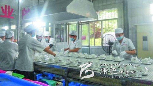 6、包裝。經(jīng)過消毒后的餐具被送到約2米長的綠色傳送帶上,工人先用手把餐具按照包裝要求擺放好。之后送到包裝機(jī)器,用包裝膜封口包裝。