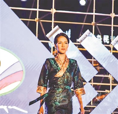 亞瑪措正在進(jìn)行T臺走秀。