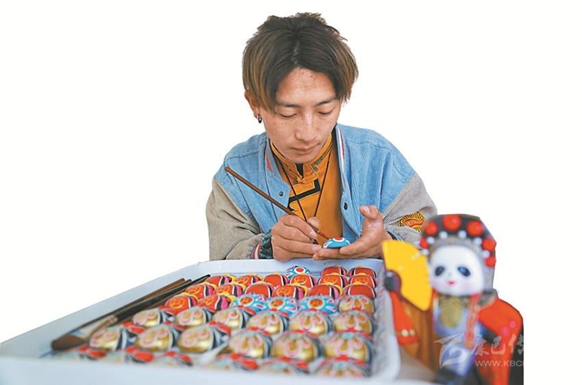 本著自主自愿的原則,教學班結(jié)束后,65名藏族青年主動加入扶貧彩繪實訓(xùn)班,成為項目的第一批學員?!皩嵱?xùn)期間不需要交任何費用,還包吃住。我對畫京劇臉譜很有興趣,我們第一個月學習繪畫基本功,第二個月開始,根據(jù)成品質(zhì)量,就可以計件得酬勞,學習期間我每月能掙500多元?!壁雠f。